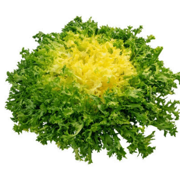 Yellow Frisee, or yellow endive, is a type of chicory with finely cut, frizzy, pale yellow leaves.